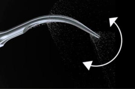 L'effetto cavitazionale prodotto all'estremità della punta induce la frammentazione dei depositi e ha un effetto disinfettante