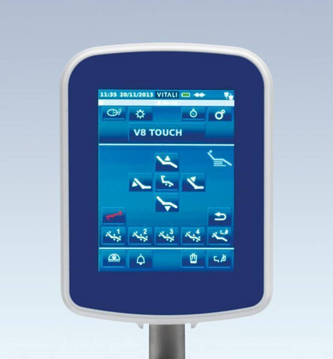 La qualità estetica di V8 TOUCH si apprezza per le linee morbide che trasmettono al paziente un senso di immediata accoglienza e al medico una percezione di razionale funzionalità, valorizzabile soprattutto in relazione all’operatività.